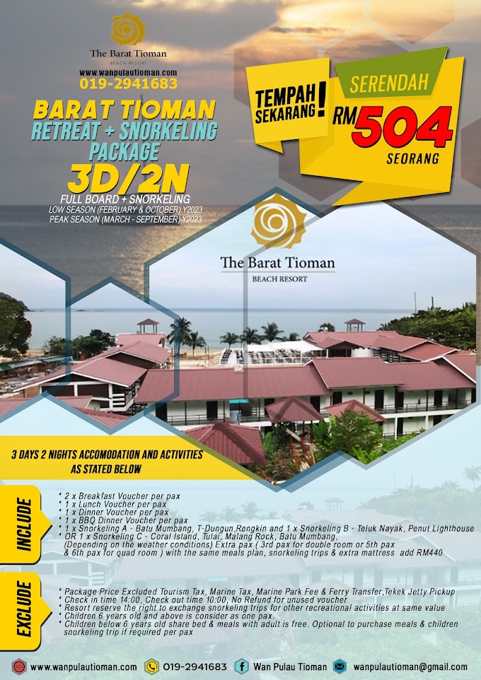Pakej Percutian 3 Hari 2 Malam Ke Pulau Tioman 2023 - The Barat Tioman Resort ~ Pulau Tioman